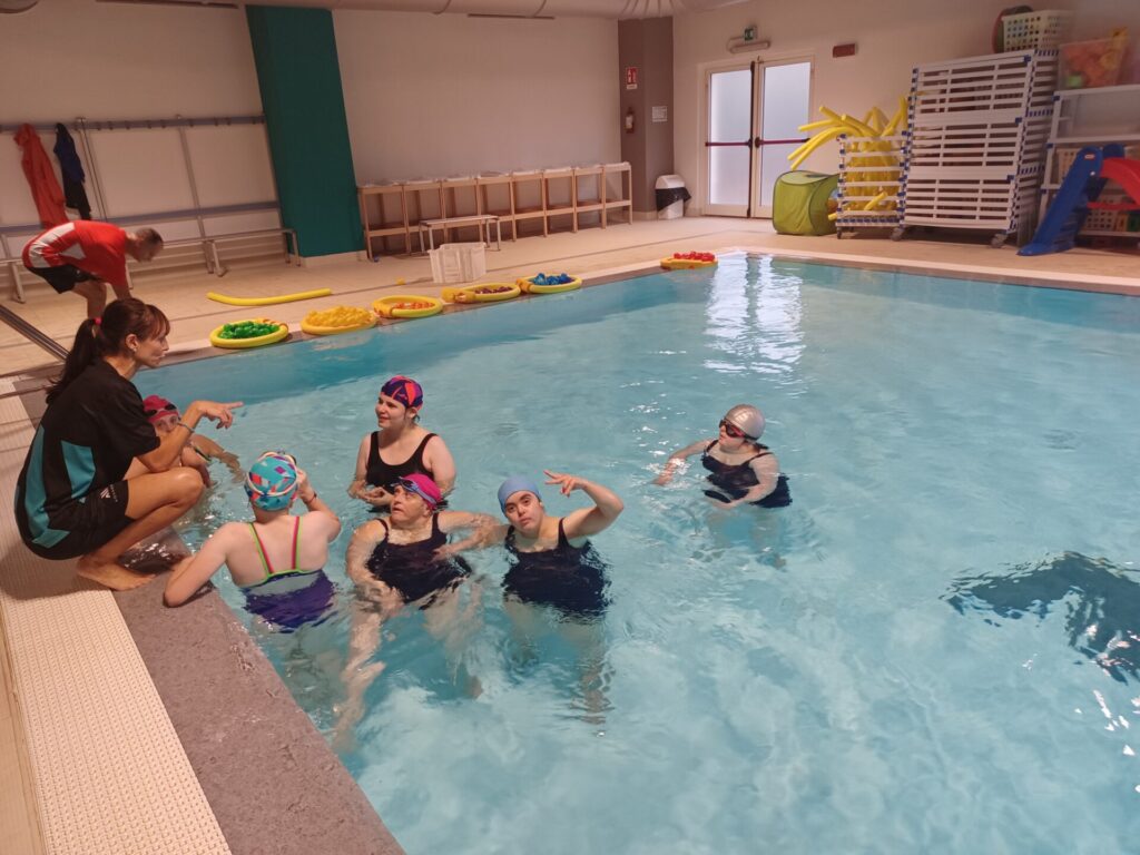 - PISCINA: 15 utenti a turno, 4 educatori. Nuotare, galleggiare, distendersi, giocare, rilassarsi … riscoprire ogni sensazione che regala il contatto con l’elemento acqua. Questo progetto è fondamentale anche per lo sviluppo delle autonomie personali, al di fuori del contesto domestico.