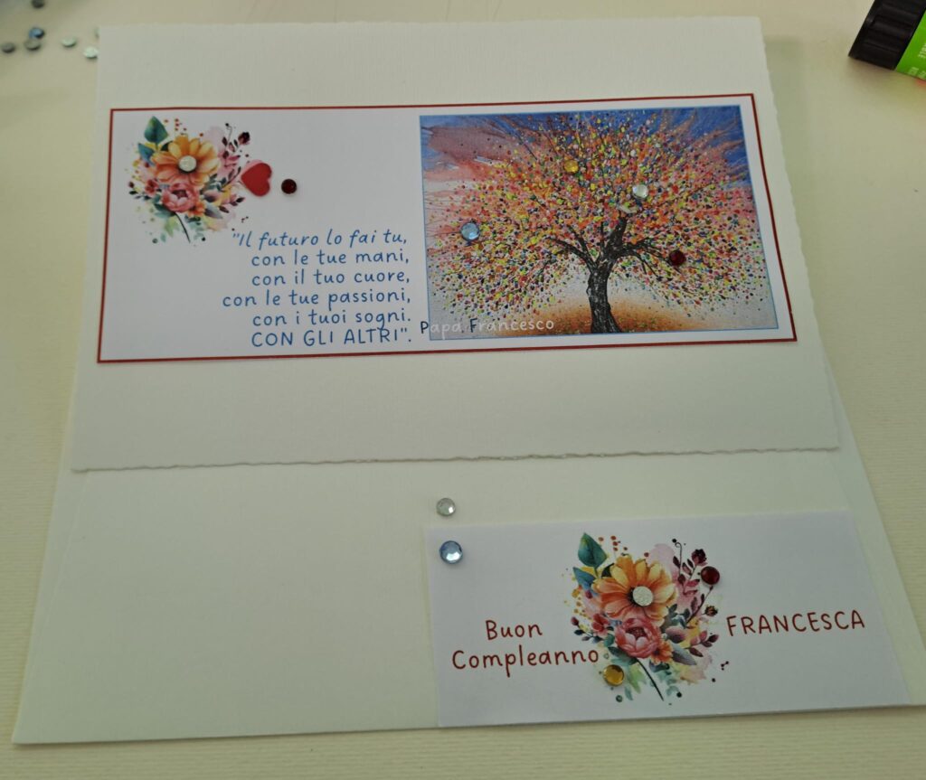 - FUSTELLATURA E GOFFRATURA: 5 utenti, 1 educatore. Creazione di decori in cartoncino e bigliettini per cerimonie o festività. Materiali: fustellatrice, cartoncino, fustelle e cartelle per goffratura.