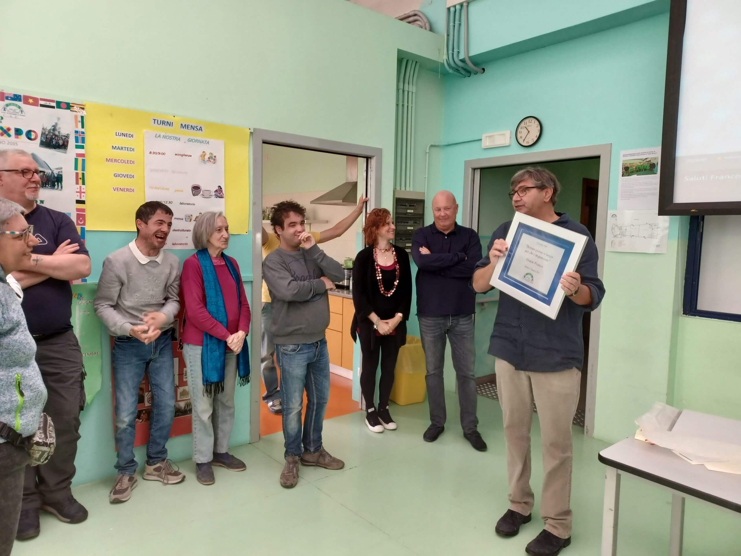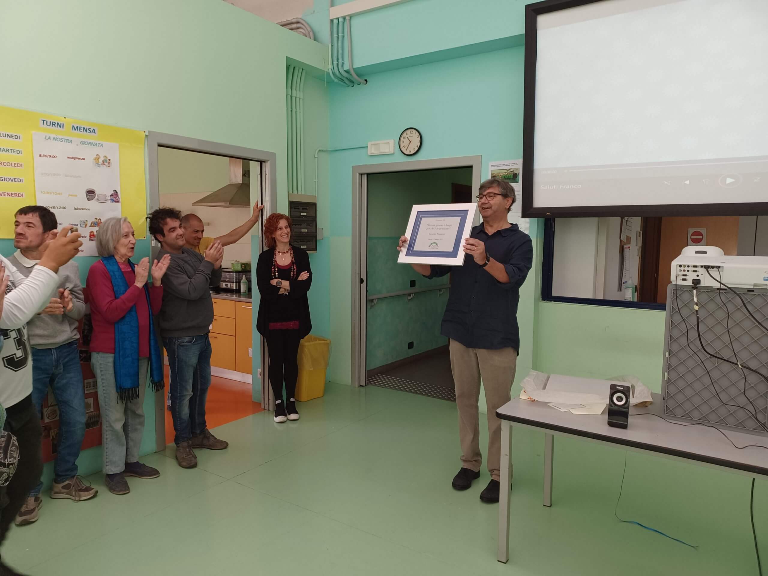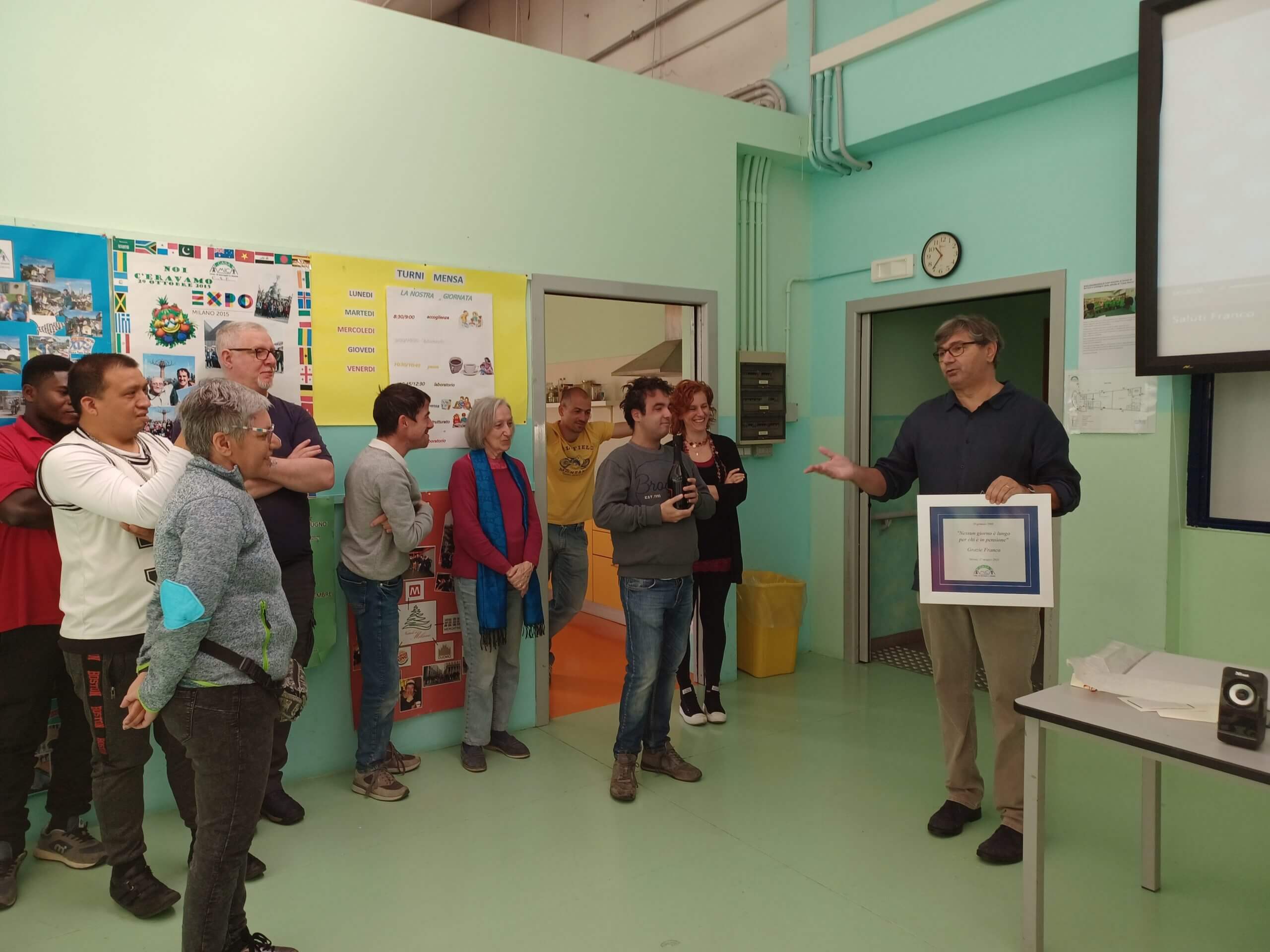 tutta la Cooperativa si è riunita per ringraziare Franco del suo prezioso contributo come cofondatore di Casa Amica.