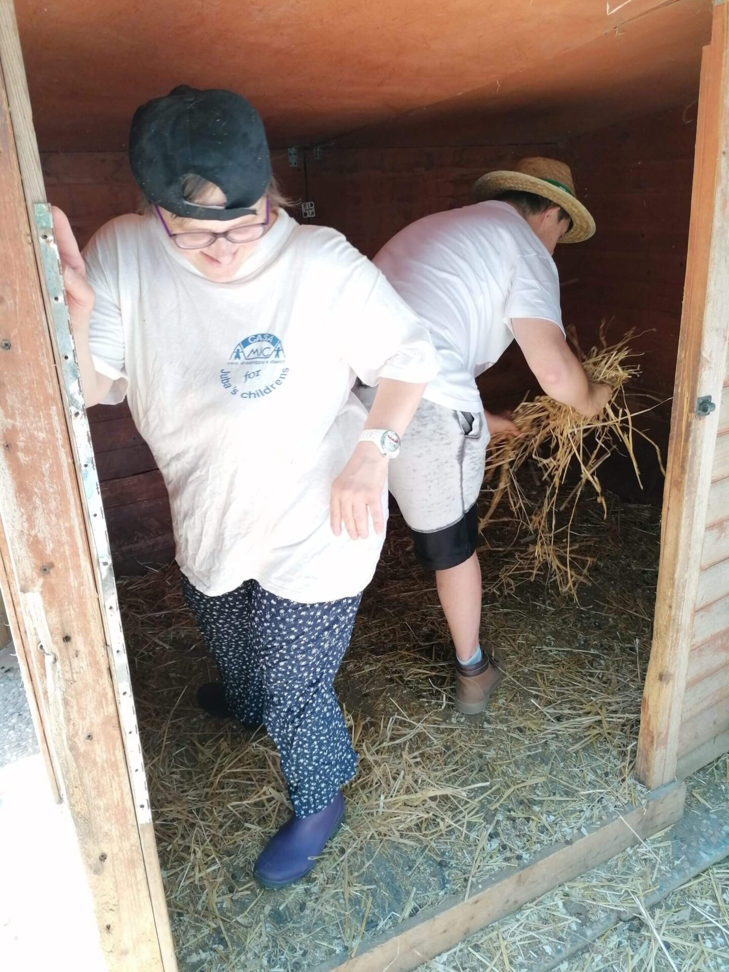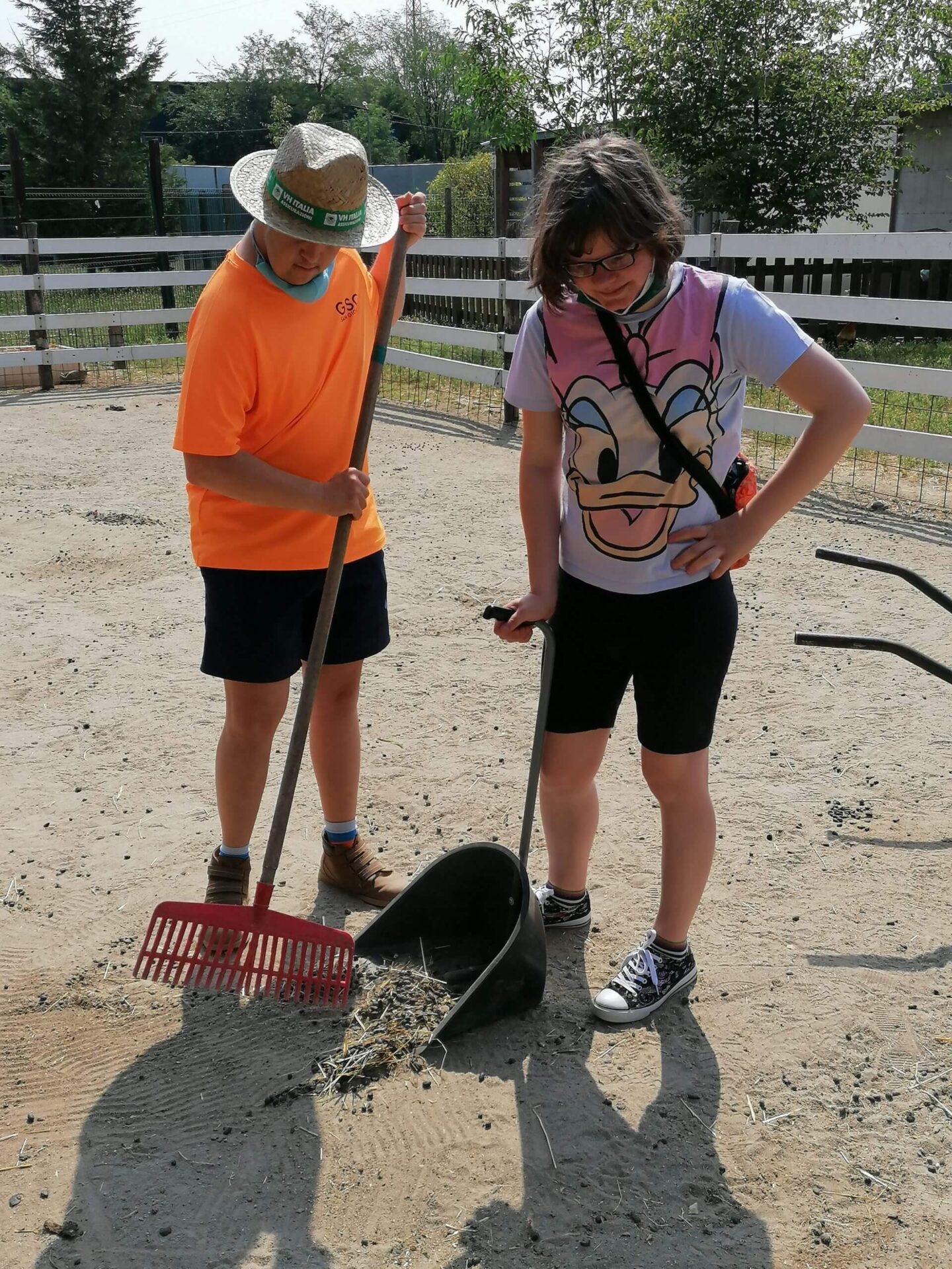 “E’ stato bello pulire il recinto delle capre e usare gli attrezzi e la carriola e dare da mangiare ai conigli e ai maiali, pulire le gabbie dei conigli è stato come in una fattoria, e pulire i cavalli.” Fede