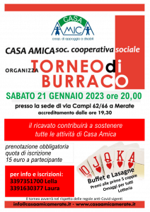 Sabato 21 gennaio torna lo storico torneo di Burraco a Casa Amica!